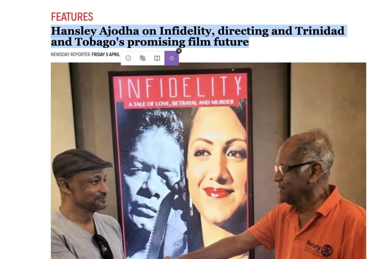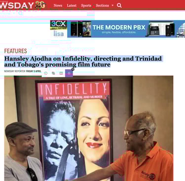 As the BMW glides its way through the meandering roads to the summit of the picturesque San Fernando Hill, the beautiful heroine (Carrie), played by Kavita Maharajh, anxiously awaits to meet her lover (Daniel), played by Joel Joseph. The lovers, unaware of being watched, unite for their clandestine rendezvous. This scene ushers in the thrilling tale of betrayal and murder, ‘Infidelity.’